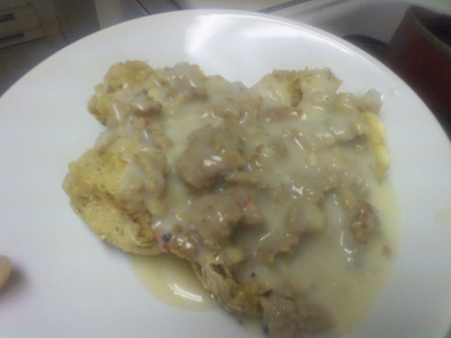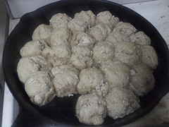 I opted out of actual bread this morning as its hella cold and my shoulder hurts and the assistant bread kneader was not available. So we did biscuits and gravy Its amazing what you can do with half a package of chicken sausage some flour and milk and butter Southern gourmet food! A little ugly but not bad for a first attempt. I put them in a well greased black cast iron skillet 0 Likes, 0 Add to Bug Hunter, 0 Grammar, 0 WAPoints 0 0 0 0 ...